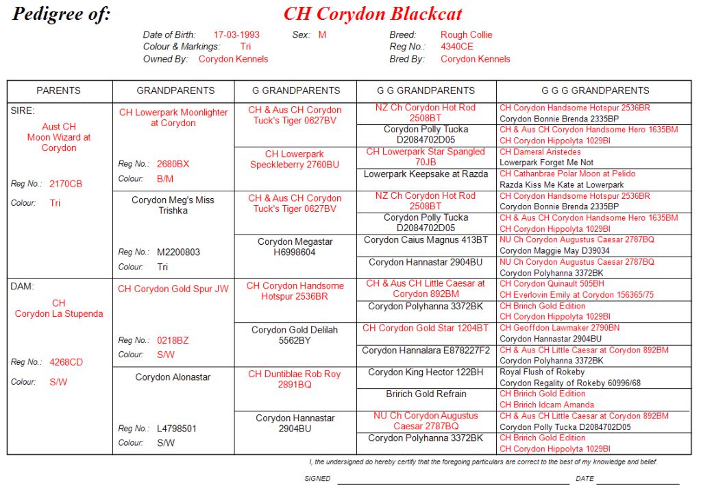 By Aus Ch Moon Wizard at Corydon ex Ch Corydon La Stupenda