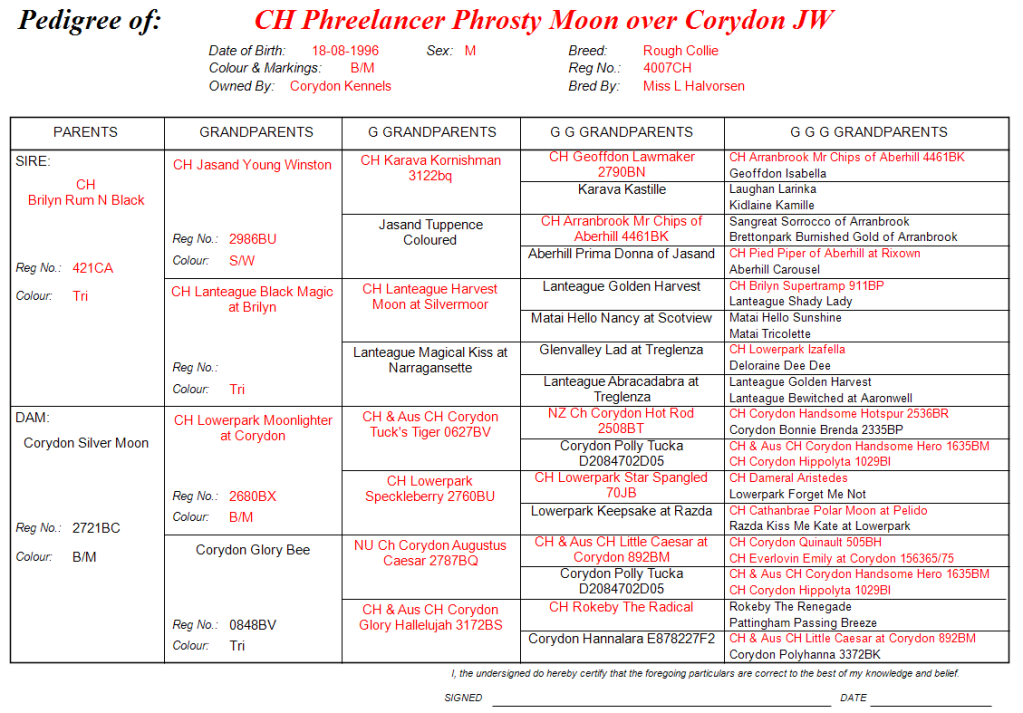 Luckily this means that he is in all of our present day Collie’s pedigrees.