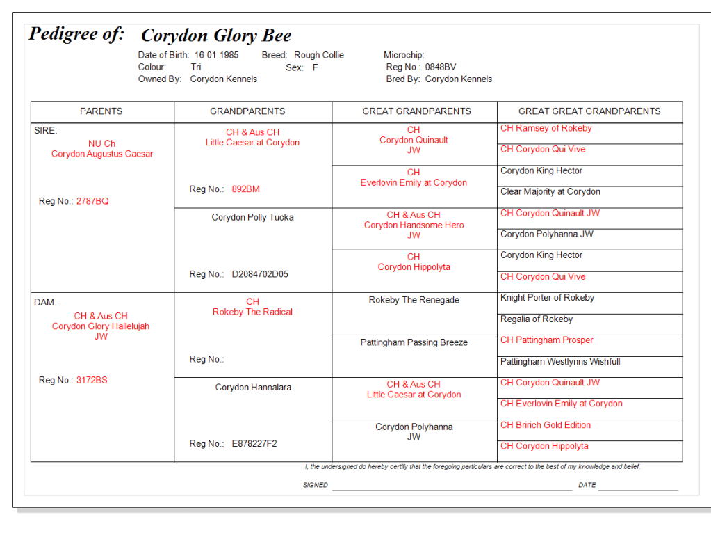 Sire:- Nu Ch Corydon Augustus Caesar – Dam:- Ch & Aus Ch Corydon Glory Halleluja