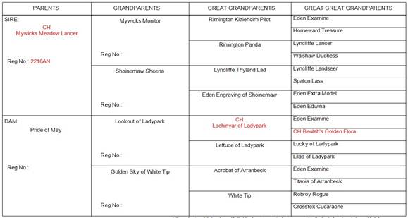 CH Lassina Love Me Tender .....................CH Corydon Handsome Hotspur JW