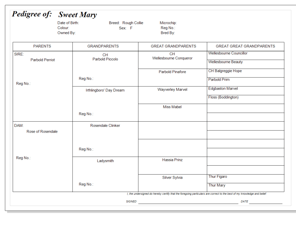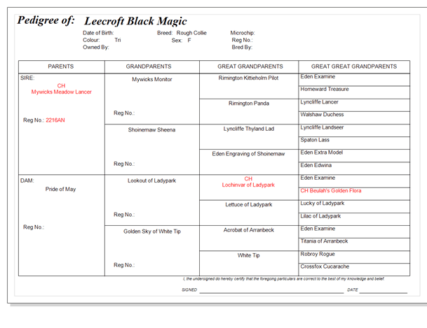 When I first started in the breed Margaret Osborne had been given the task by the Kennel Club to go and examine a dog to see if it was a true Rough Collie. If the animal was deemed to be a member of the breed, then it was registered at the kennel club. The problem with this is that we do not know the parents of the dog or bitch involved.
