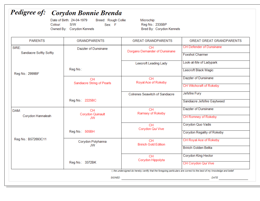 She only went to four shows. She came into season soon after winning her CC. We mated her and she produced 4 puppies but she became very matronly after that. She had a further two litters. She was a successful brood as she produced three Champions. Including NZ Ch Corydon Hot Rod. We showed him here as he was a spectacular puppy, before he went to New Zealand where he had a very good show and stud career.
