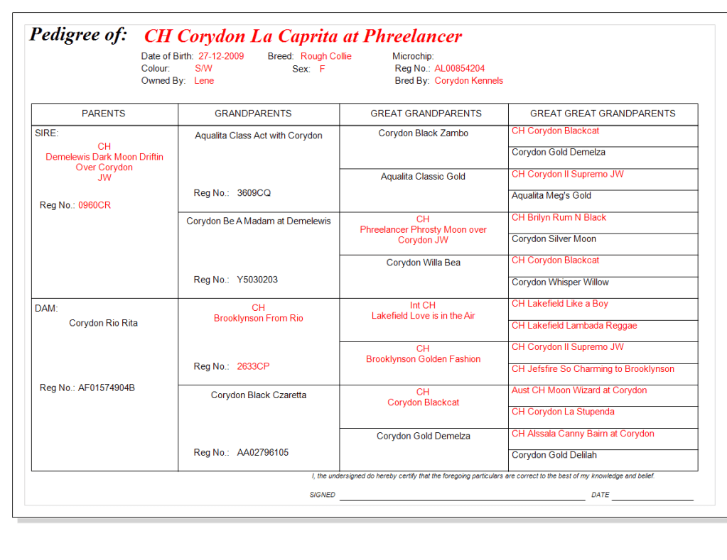Sire :- Ch Demelewis Dark Moon Driftin Over Corydon – Dam :- Corydon Rio Rita
