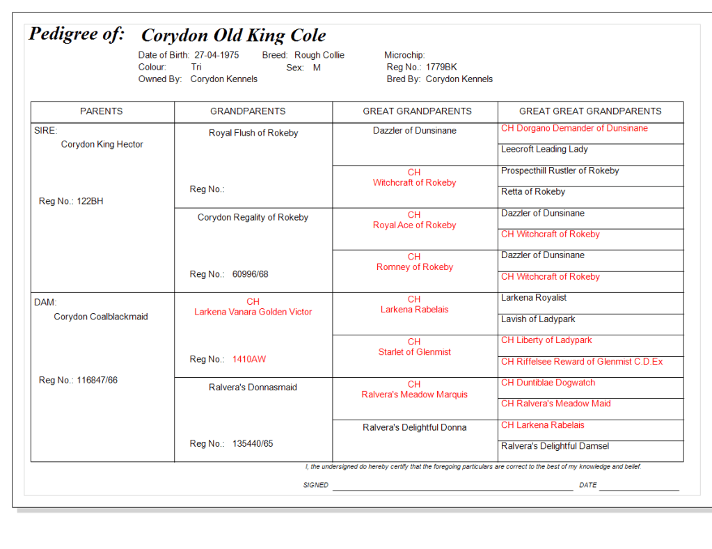 Sire:- Corydon King Hector – Dam Corydon Coalblackmaid
