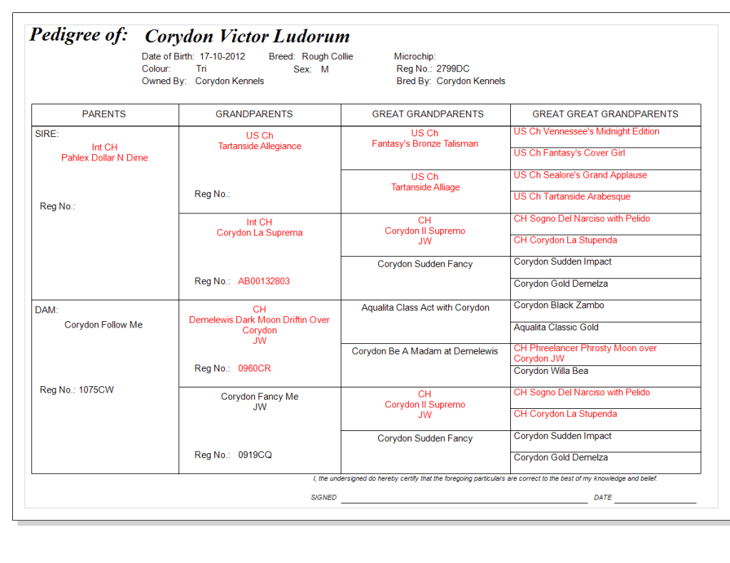 His Grand dam Int Ch Corydon La Suprema is probably the most successful show bitch of all time in Denmark.