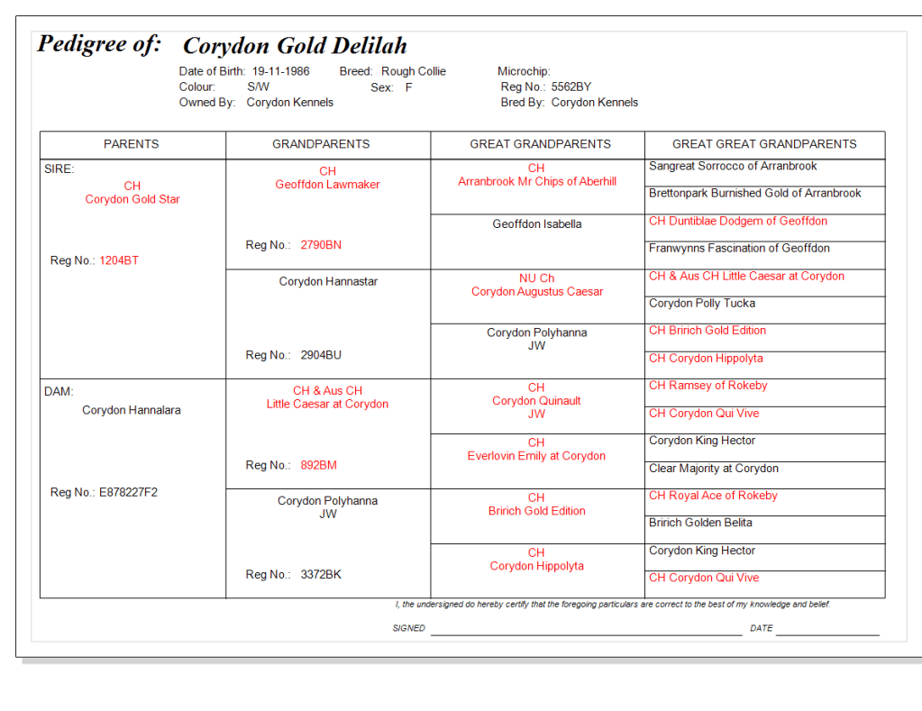 Sire:- Ch Corydon Gold Star – Dam:- Corydon Hannalara