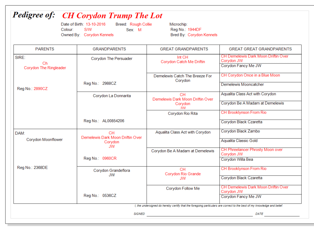 Sire:- Ch Corydon The Ringleader – Dam:- Corydon Moonflower