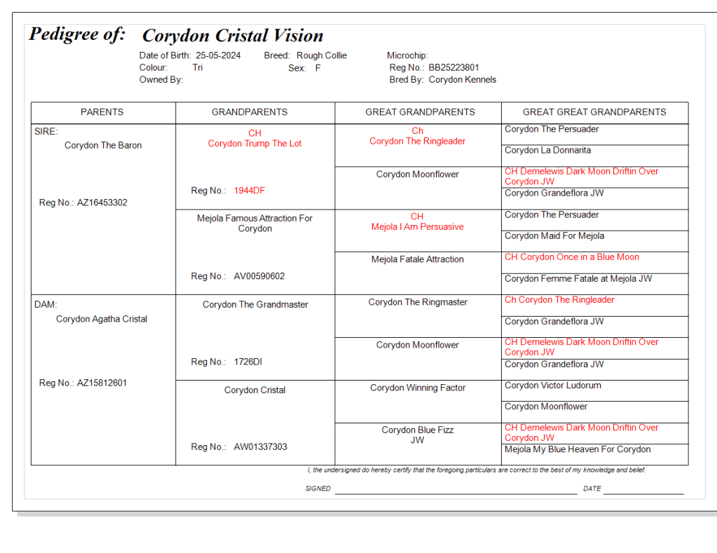Sire:- Corydon The Baron – Dam:- Corydon Agatha Crystal