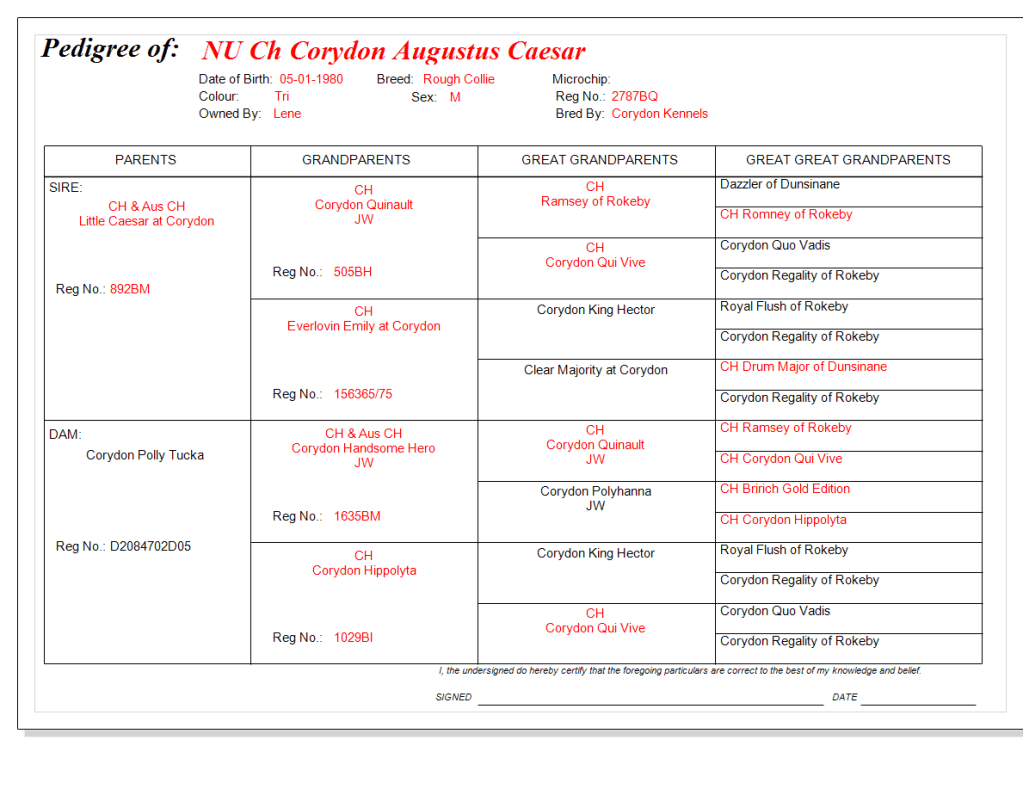 Sire :- Ch & Aus Ch Little Caesar at Corydon – Dam :- Corydon Polly Tucka