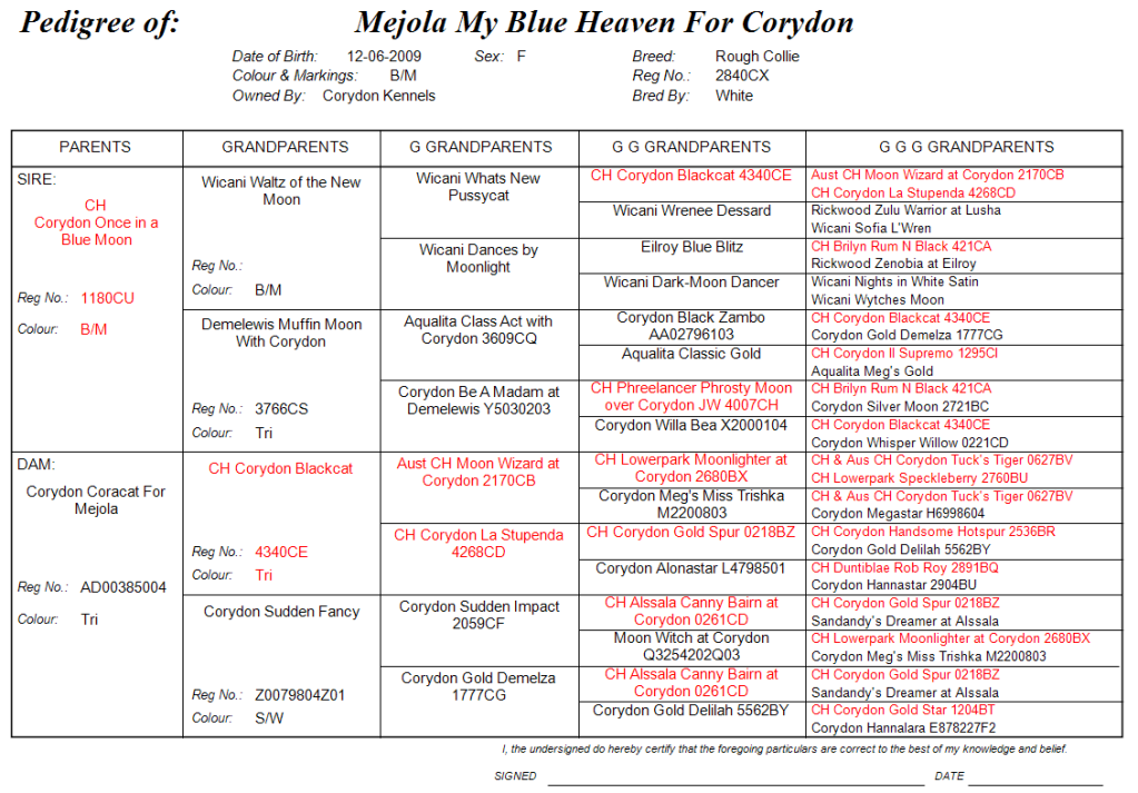 By Ch Corydon Once In A Blue Moon ex Corydon Coracat at Mejola