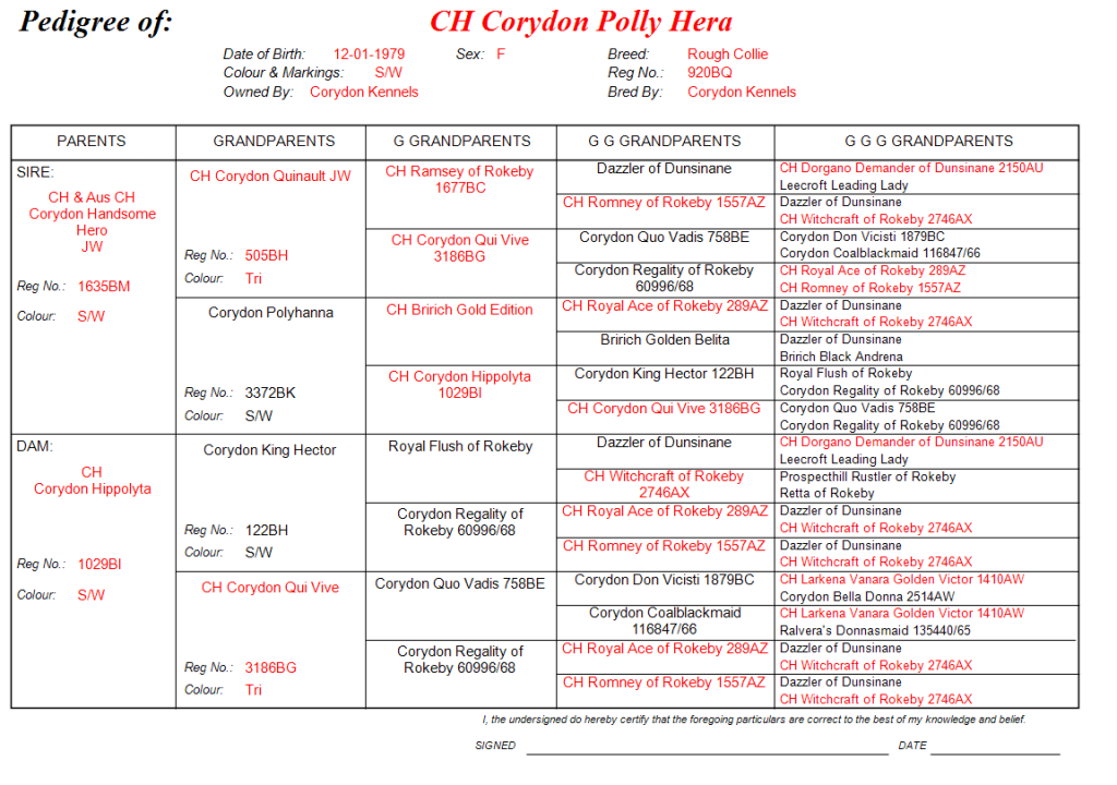 By Ch Corydon Handsome Hero ex Ch Corydon Hippolyta.