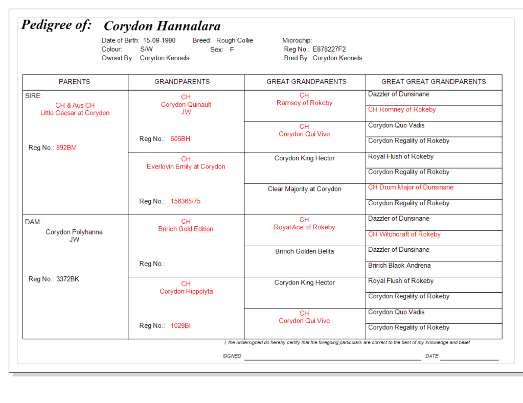Sire:- Ch & Aus Ch Little Caesar at Corydon – Dam:- Corydon Pollyhanna