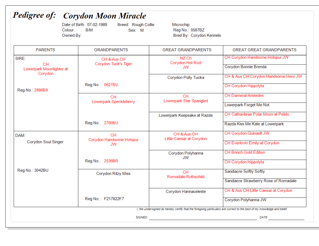 Sire:- Ch Lowerpark Moonlighter at Corydon – Dam:- Corydon Soul Singer