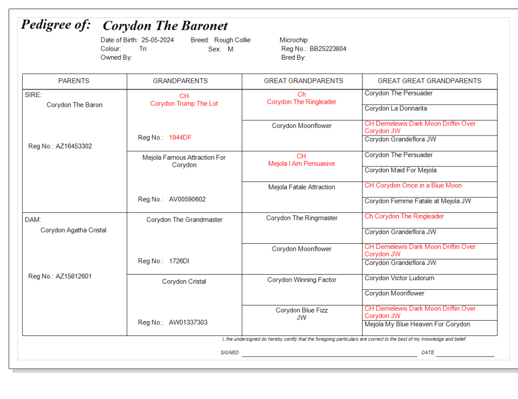 Sire:- Corydon The Baron – Dam:- Corydon Agatha Cristal