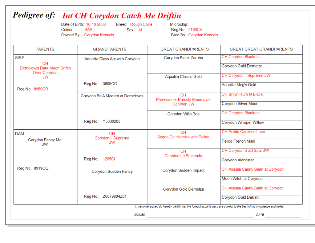 Sire:- Ch Demelewis Dark Moon Driftin Over Corydon – Dam:- Corydon Fancy Me