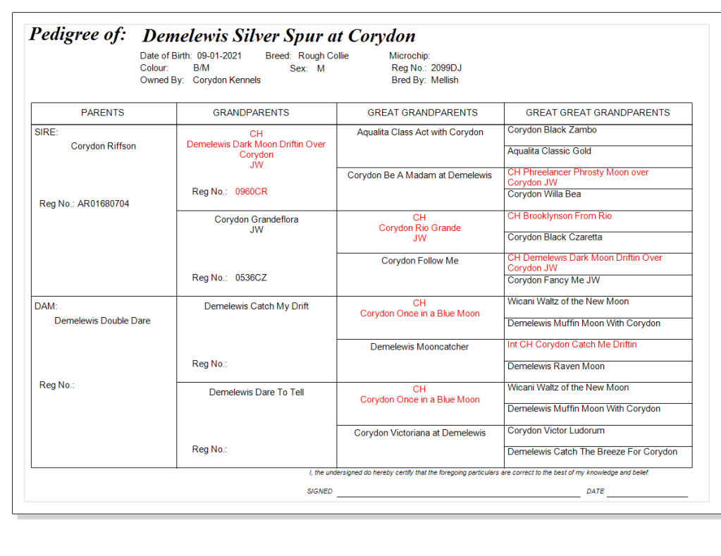 Sire Corydon Riffson – Dam Demelewis Double Dare
