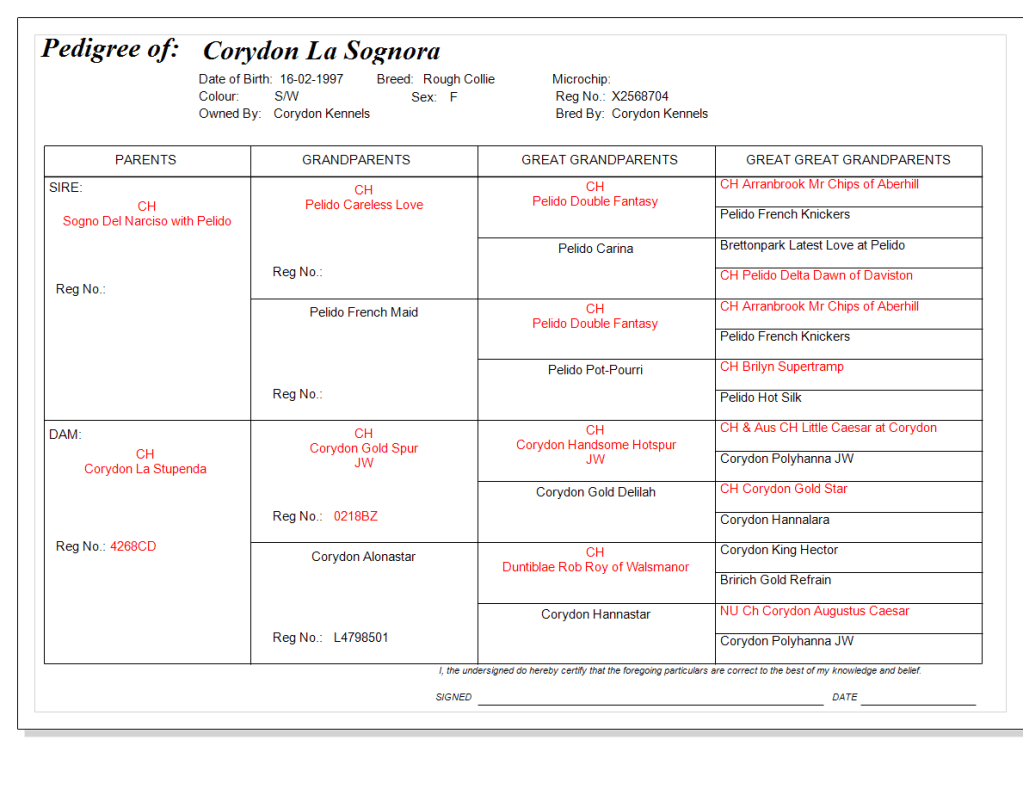 She was the litter sister to Ch Corydon Il Supremo. She never had a litter due to internal damage. Her Best in Show win:- 29/3/1998 – Collie Association Open Show – Judge Mr J Geddes.