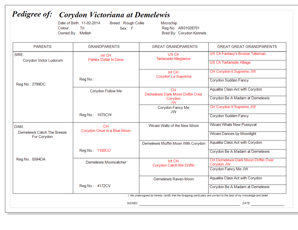 Sire:- Corydon Victor Ludorum – Dam:- Demelewis Catch The Breeze For Corydon